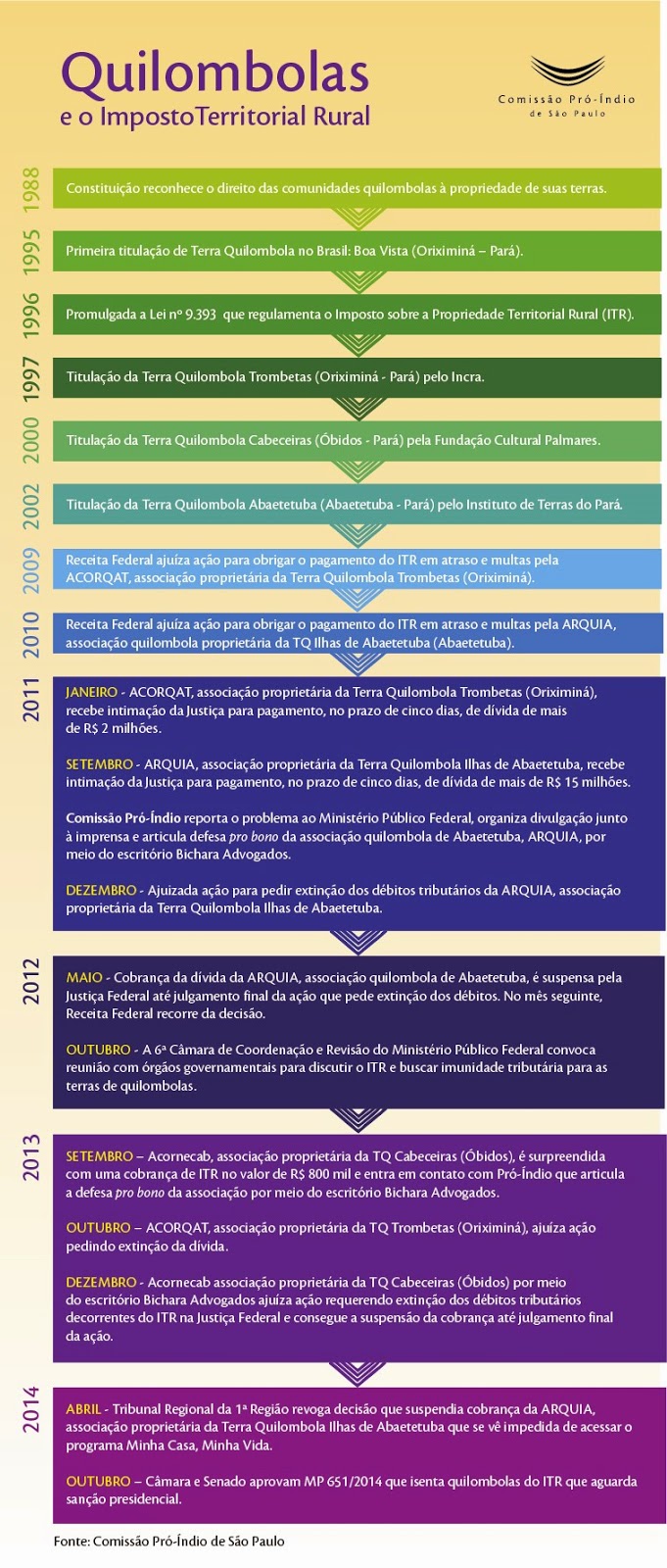 As decisões nas ações ajuizadas pelas associações quilombolas de Abaetetuba (ARQUIA) e Óbidos (Acornecab), por meio do escritório Bichara Advogados, reforçaram o entendimento que não caberia cobrança do imposto em terras quilombolas.